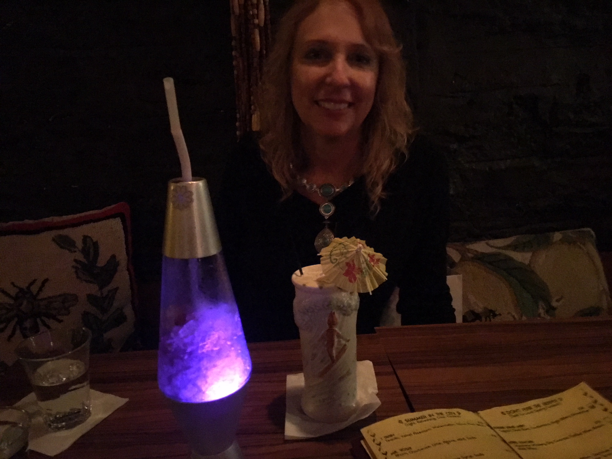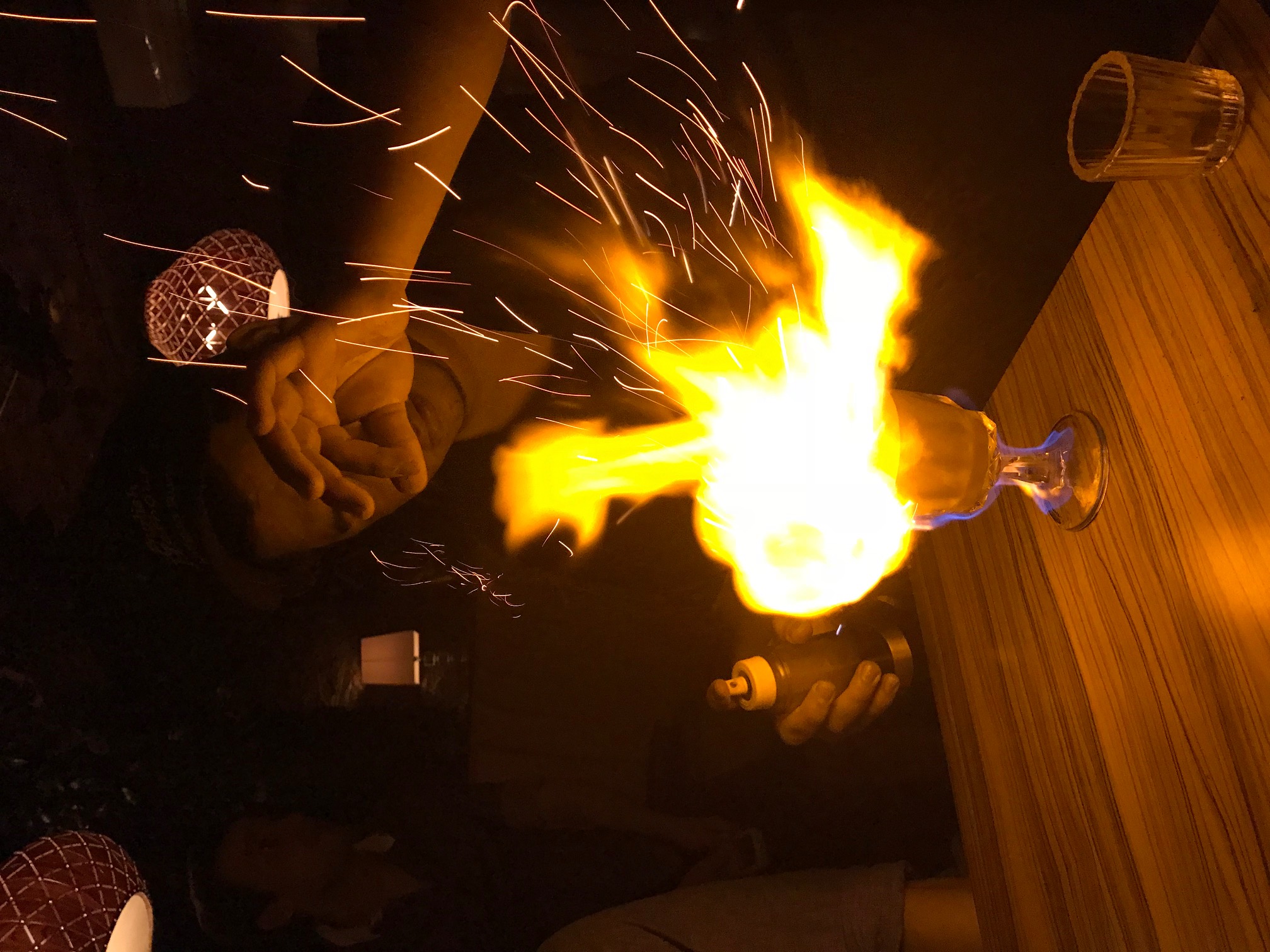 After the blogger meetup Chris and Khail and I went to dinner and then drinks at Honey Well. We had lava lamp drinks, coconut drinks with mescal in them and umbrellas in artisan drink ware, and last but not least — the fire drink!