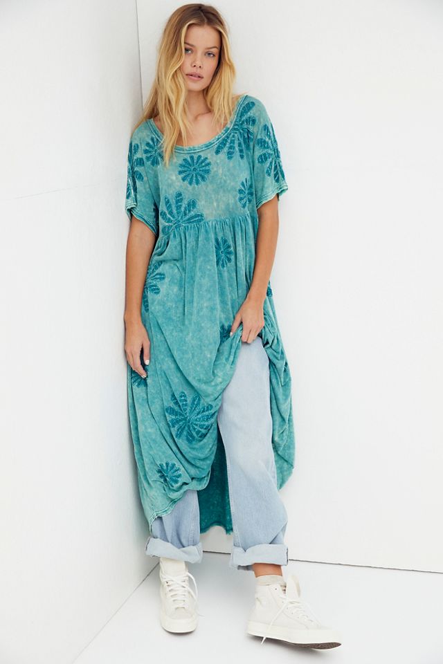 Blooming Tee Dress from Free People warms up with jeans and sneakers - A t-shirt dress + leggings or footless tights or jeans + sandals or sneakers.