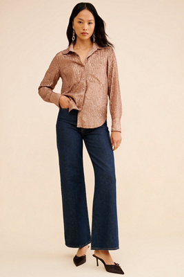 - Roll up the sleeves of a sequin shirt and wear over distressed jeans. Add a chunky gold chain bracelet + pretty shoes.