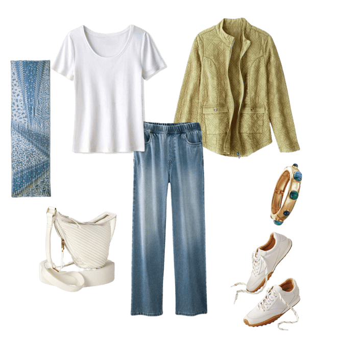 Lightweight Quilted Zip Front Jacket from Soft Surroundings with jeans and a tee - A quilted zip-front jacket + jeans & a tee.