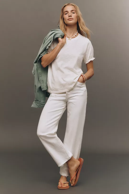 - Accessorize a short-sleeve white tee & distressed jeans with sneakers, a cap, one or more colorful bracelets & sunglasses.