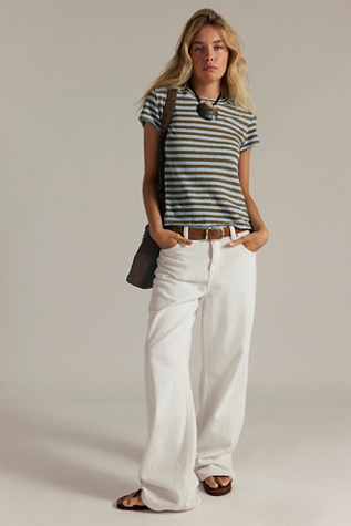 We The Free Nora Striped Linen Tee from Free People with white jeans - A striped tee + jeans + a big necklace. You might like to belt it.